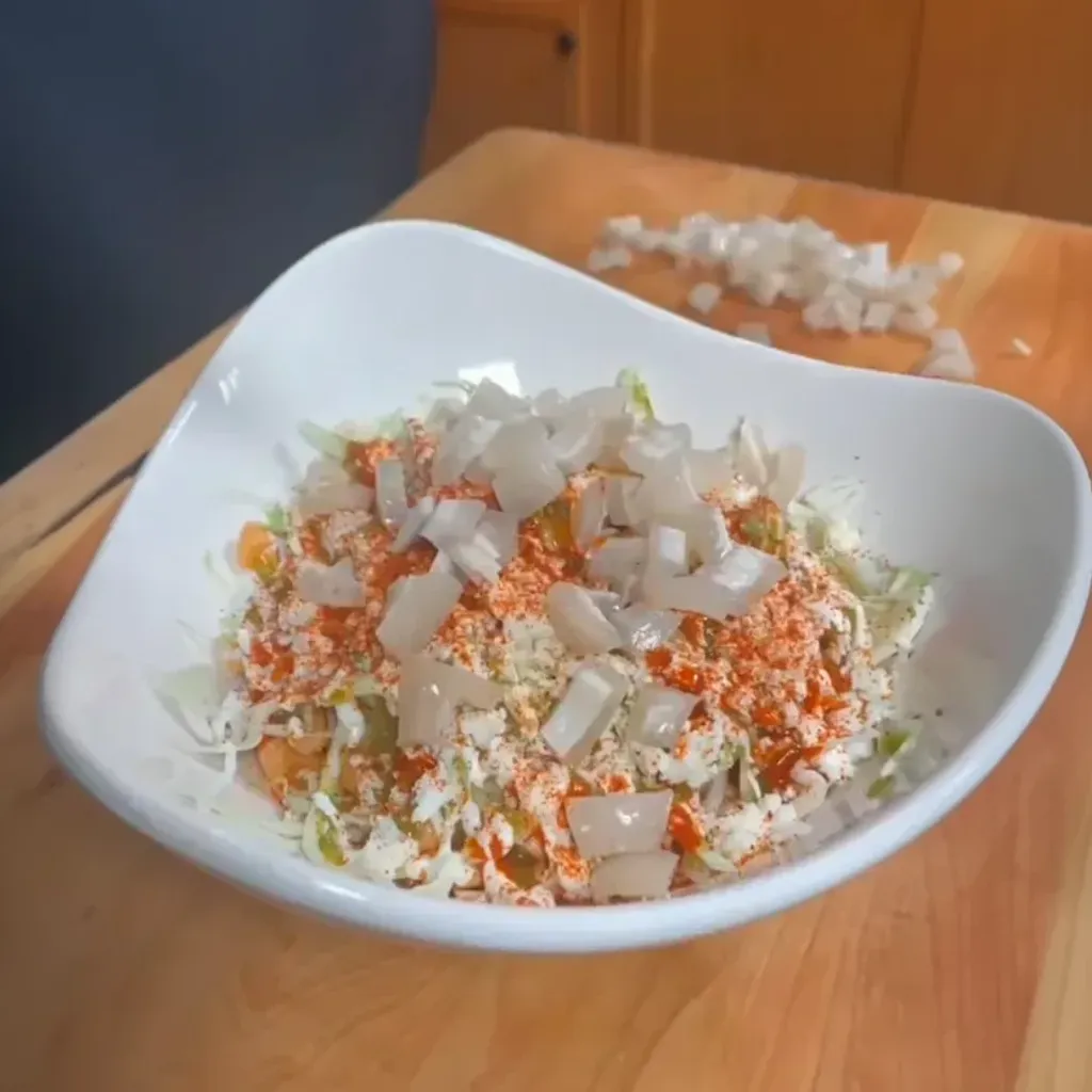 - 🐷 1/2 cup pickled pork skins, drained and chopped