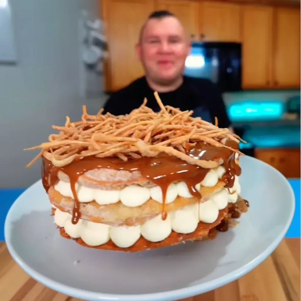 This delightful fusion dessert combines the crispy sweetness of traditional buñuelos with the creamy richness of a no-bake cheesecake, offering a festive treat perfect for any occasion.