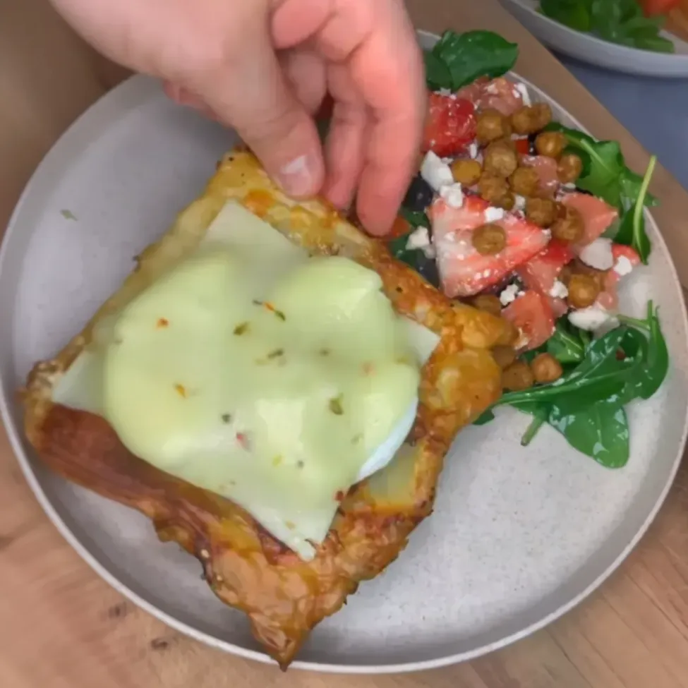 - Ensure your poached eggs are well drained to keep the puff pastry crisp.